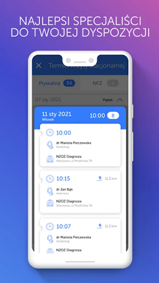 Make an appointment and pay conveniently: with a quick online transfer. Thanks to MyDr, you have access to available appointment dates and you can make an appointment with just a few clicks. You can pay for your visit safely: via Przelewy24.