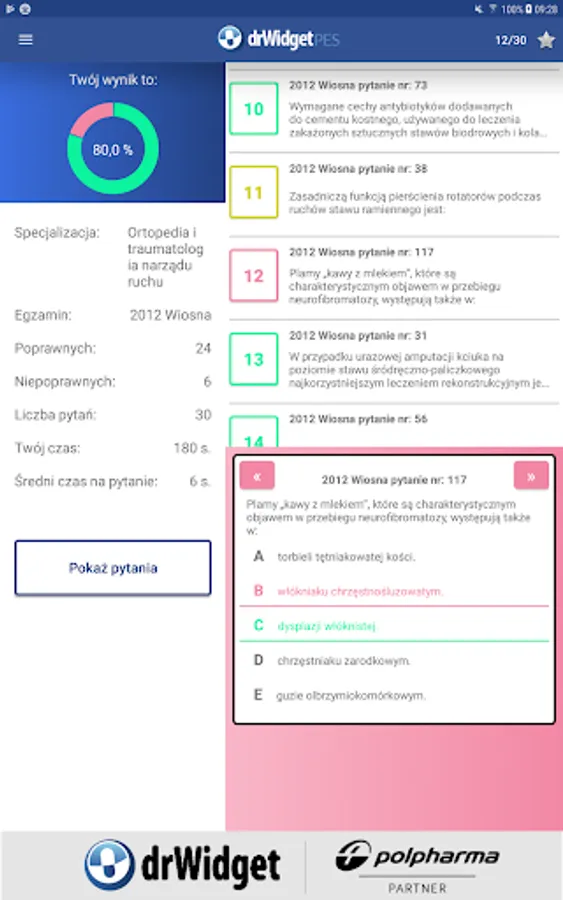 It is interesting to mention the other amenities, which is provided in the application. For example, you select your favorite questions and return to them at any time. Helpful in acquiring knowledge is also the option of storing the results. The system records correct and incorrect answers, around the time of the exam and the average time for one question. The results are also presented on the chart.