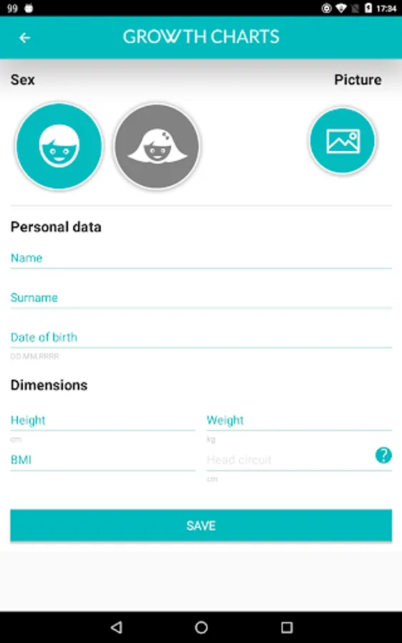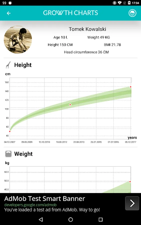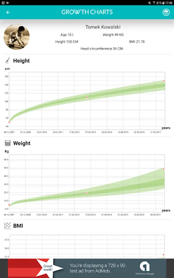 Just select Your child's sex, height, weight and head circumference and the app will show You how is Your child developing.