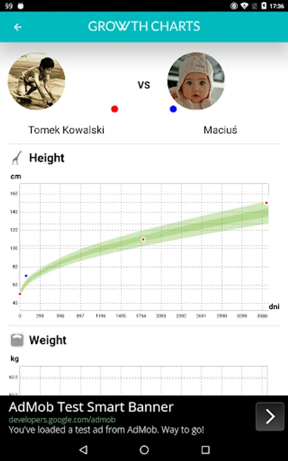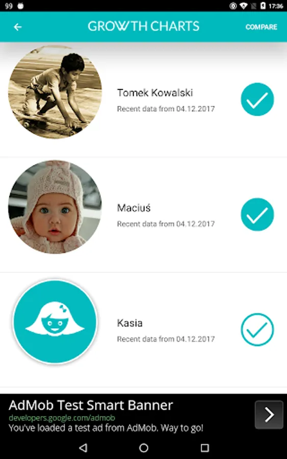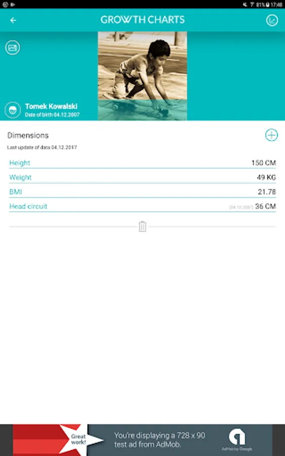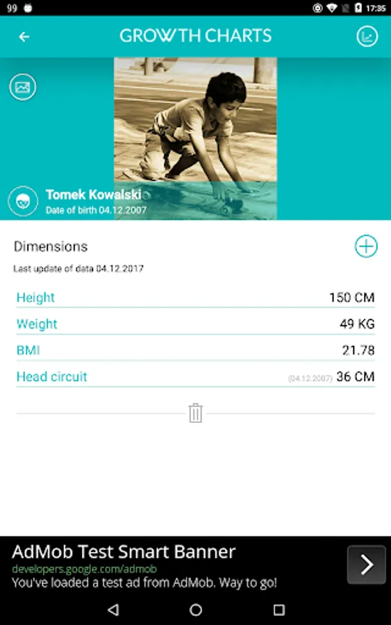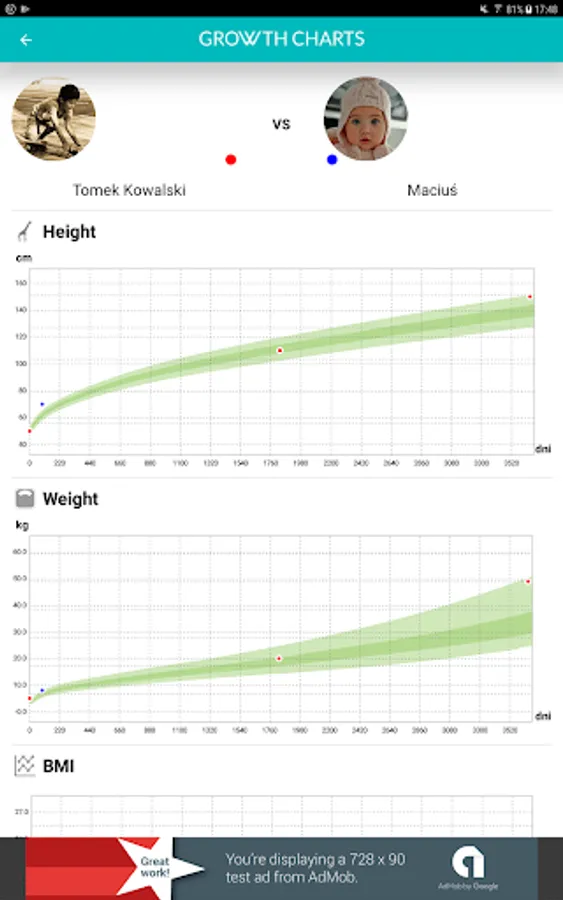 The app lets You create multiple children profiles, compare their measurements and look through the previously entered measurements.