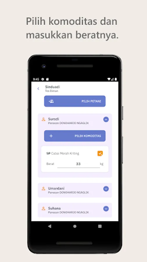 Aplikasi lelang cabai di Sleman berbasis android. Aplikasi ini merupakan aplikasi yang ditujukan bagi petugas titik kumpul lelang cabai di Sleman untuk memudahkan pendataan petani cabai dan jumlah cabai yang disetor.