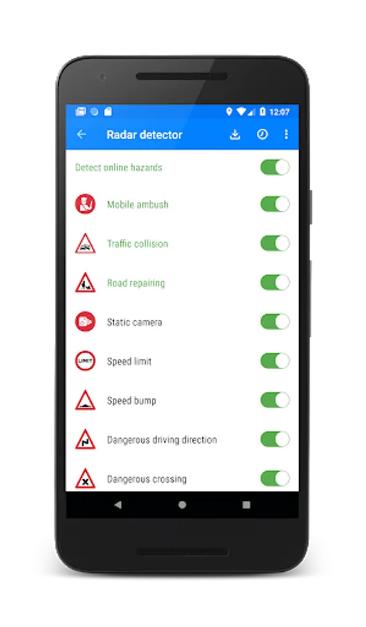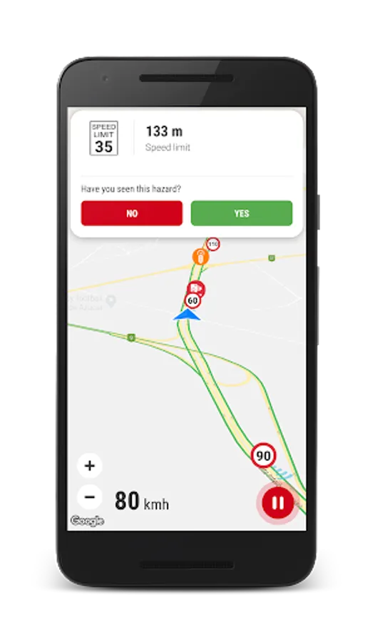 ★ The application plays the sound and shows hazard on the map and distance to this hazard