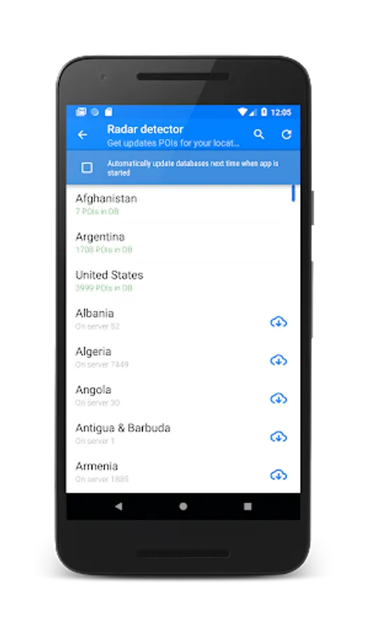 1. If you just installed the app you will need to go to menu "Update databased" to download and install the latest database of speed camera for your region (country).