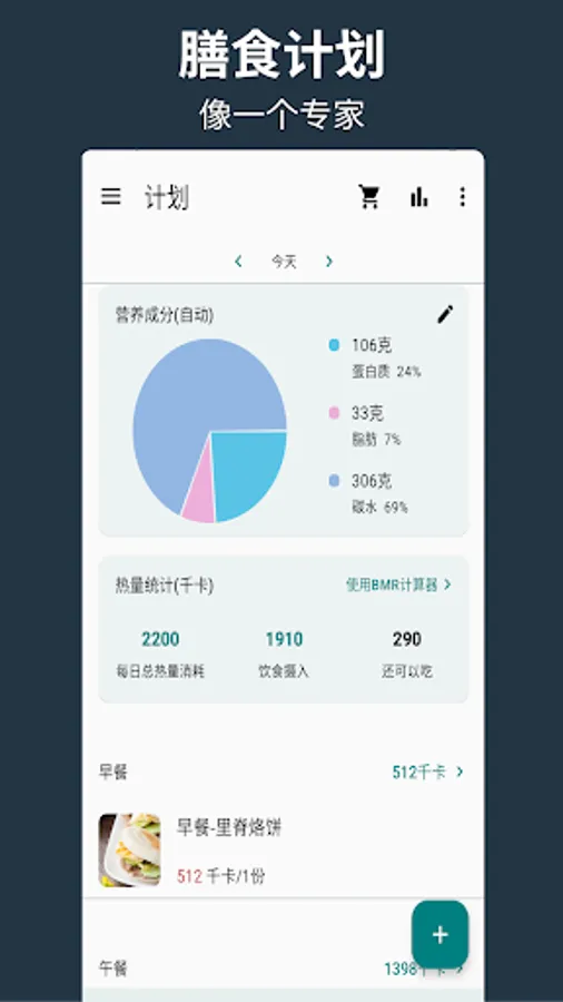 3. Meal plan: Based on BMR, it will help you automatically calculate the calorie difference and plan your diet like an expert.