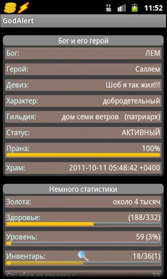 WARNING! Now we have a PRO version. Want to keep track of multiple characters? Interested in widgets? You will be interesting to see their hero or heroes on an imaginary map Godville? Just want to support the developer and give him an incentive to further improve the application? Look GodAlert Pro on Google Play!