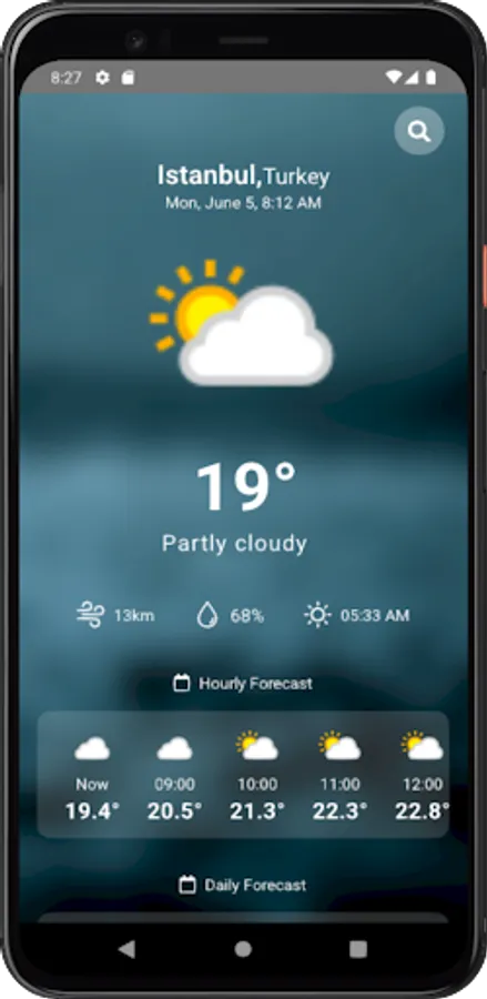 Hava Durumu uygulaması, anlık hava durumu bilgilerini kolayca takip edebileceğiniz kullanıcı dostu bir Android uygulamasıdır. Detaylı hava durumu raporları, saatlik ve günlük tahminler, yağış olasılığı, rüzgar hızı ve daha fazlasını sunarak her zaman güncel kalmayı sağlar. Kullanıcı dostu arayüzü ve güçlü altyapısıyla Hava Durumu uygulaması, günlük yaşamınızda hava durumunu takip etmek için vazgeçilmez bir yardımcınız olacak.