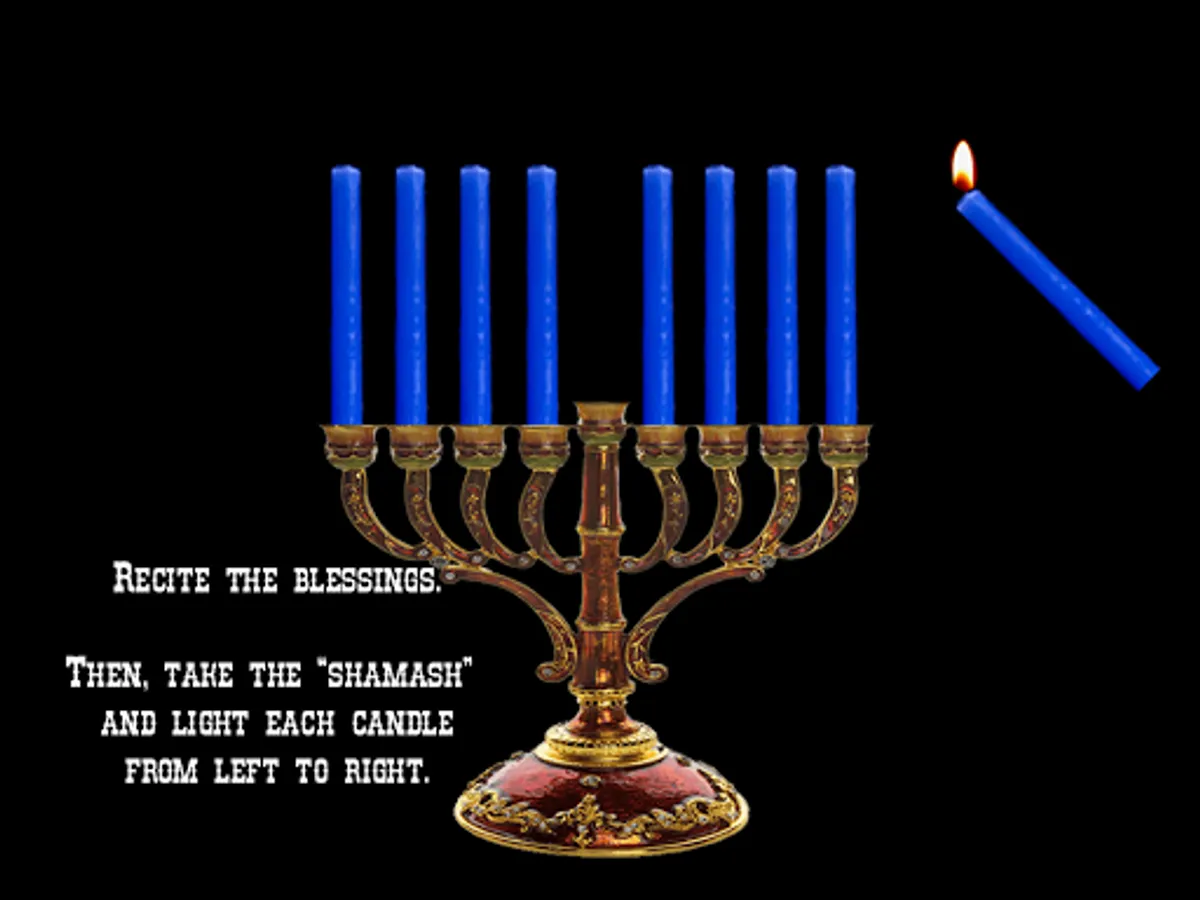 Please note that according to the traditional Jewish custom the candles are added from right to left and are then lit from left to right. For more info see: