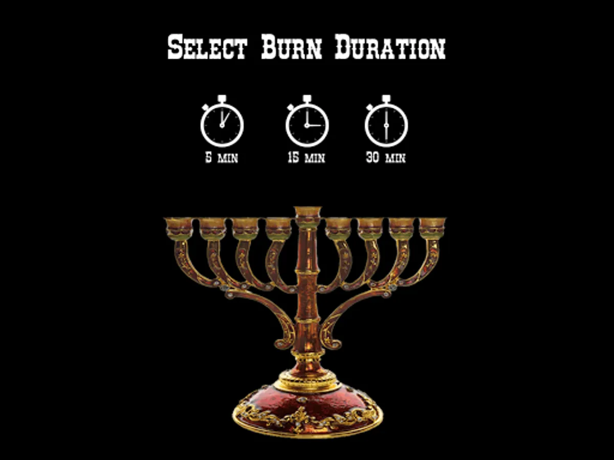 Pick your candle color, burn duration, place each candle, light each candle, watch the flames twinkle as the candles burn down!