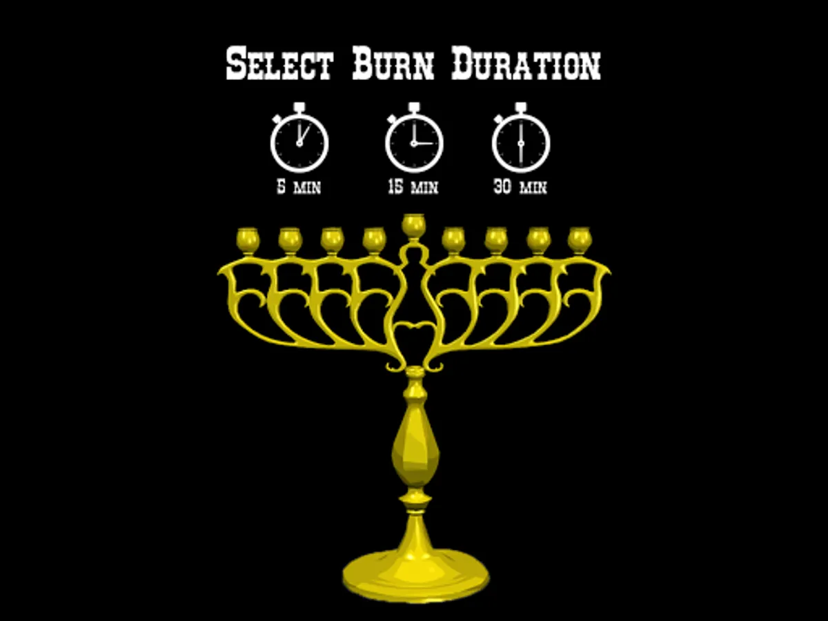 Pick your candle color, burn duration, place each candle, light each candle, watch the flames twinkle as the candles burn down!