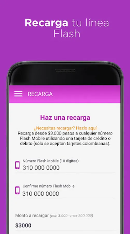 • Make recharges from your own cell phone with your credit or debit card