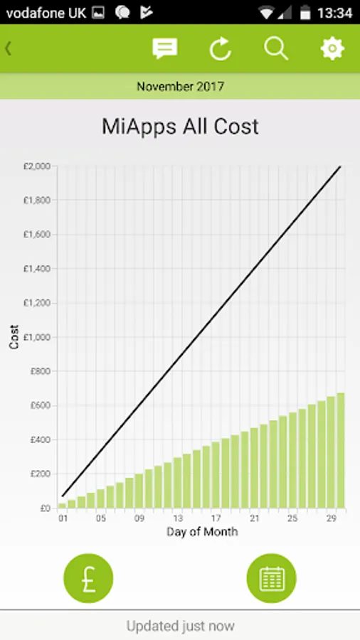 Information is summarized by Account and Month, providing a daily graphical breakdown of each month.