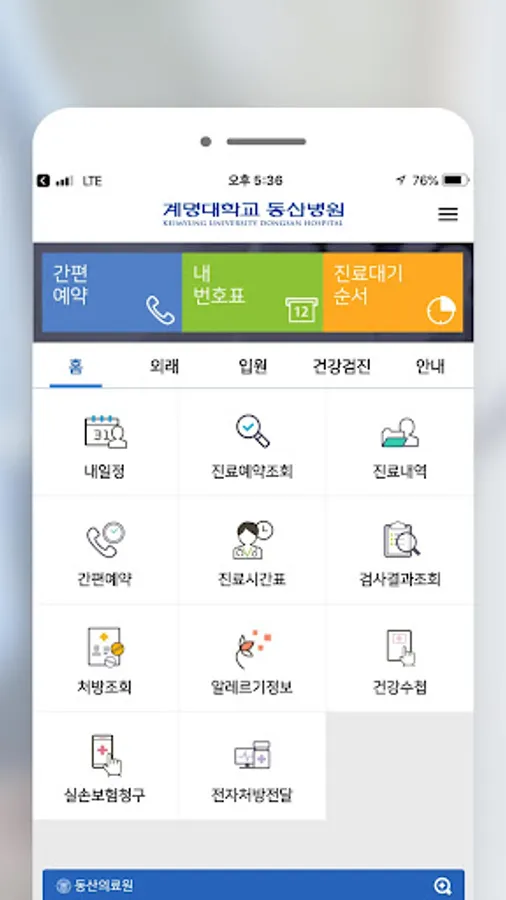 If you install it, you can receive various services as below at Keimyung University Dongsan Hospital.