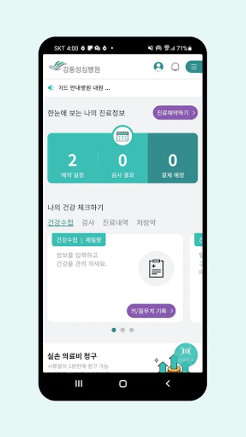 This is a mobile application that allows you to conveniently use the Kangdong Heart Hospital app