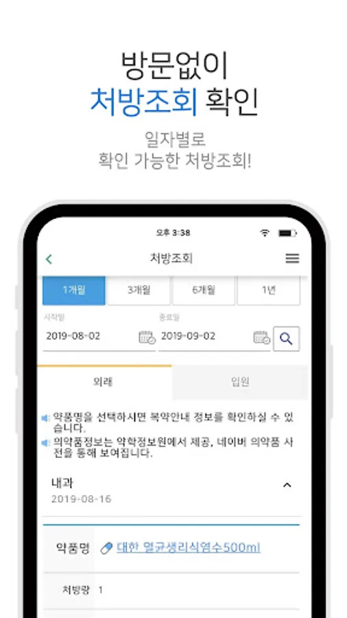 - Prescription inquiry: You can check the detailed information of the prescribed drug and how to take it.