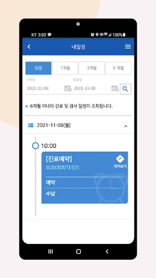 · Nearby device: It is used to receive a welcome message upon arrival at the hospital and to process the reception through arrival confirmation upon arrival at the medical department.