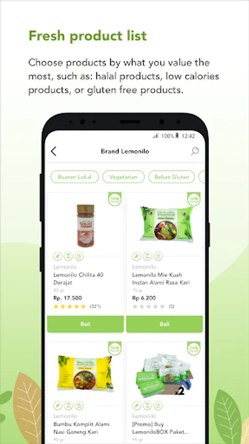 Various healthy product categories: you can search products based on categories, such as halal, vegetarian, or gluten-free products.