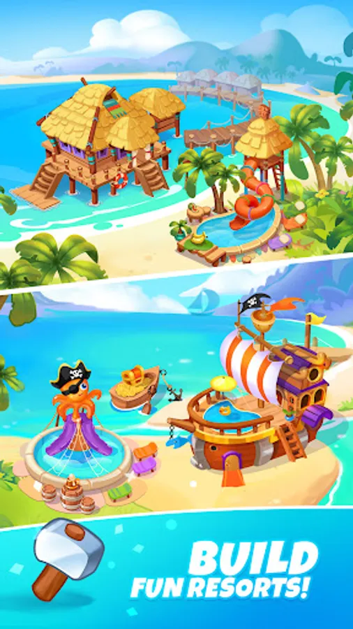 Build your magical resorts and start earning tons of coins for each completed resort - After all, you are the Resort King now! 🏖️