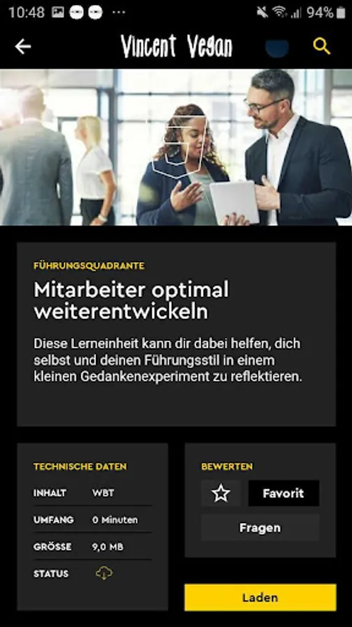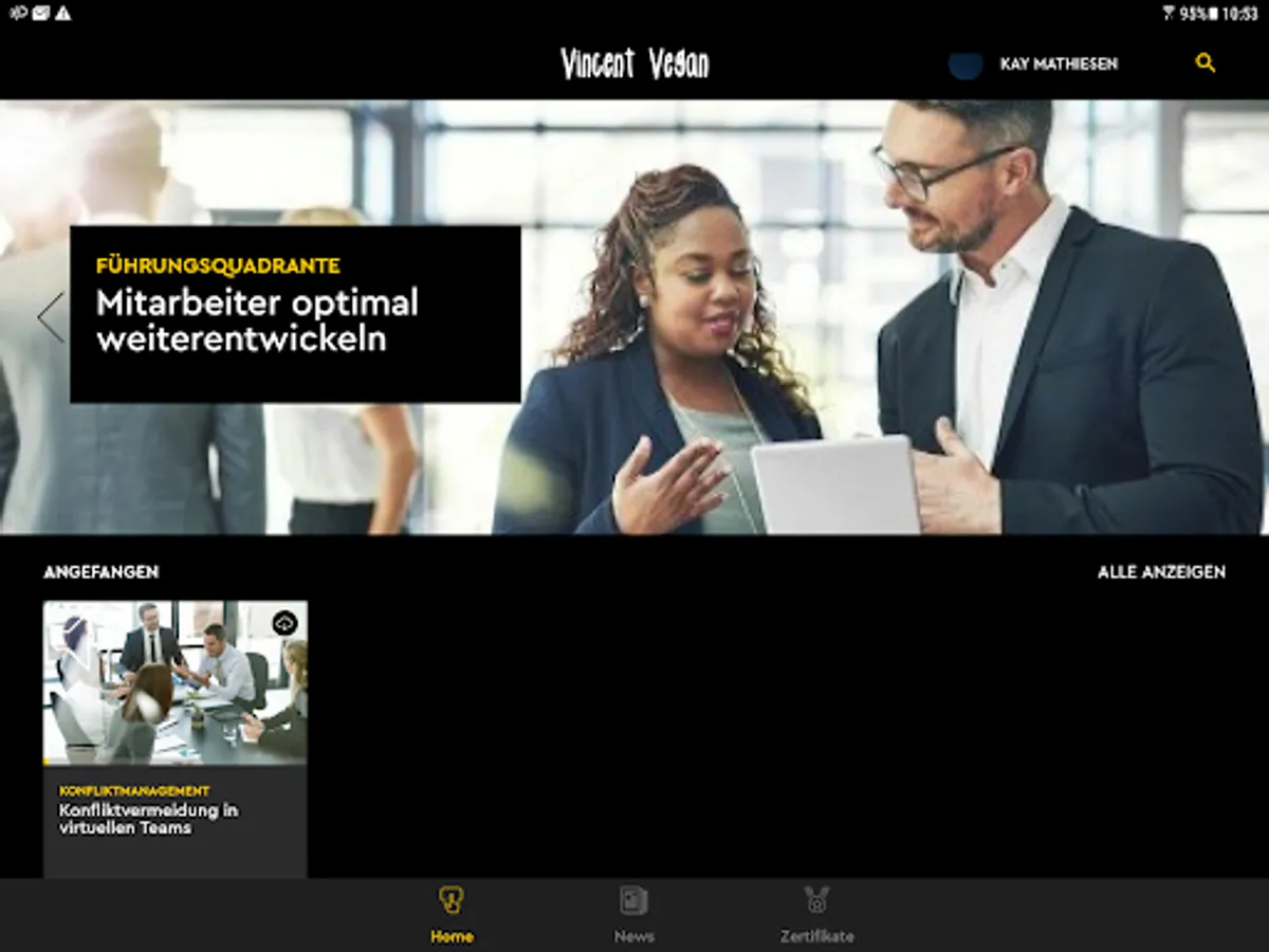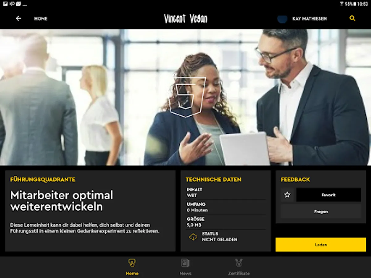In order to prepare you optimally for your work at Vincent Vegan, this app supports you with learning content in the form of videos and descriptions of various work processes that are relevant to you. Everything you want and need to know in the future can be found easily in this app - regardless of time and place. With the help of certificates and various tests, you can not only prove your knowledge, but also archive it for the future. In addition, the campus provides you with constant news from the Vinciverse, so that you are always up to date.