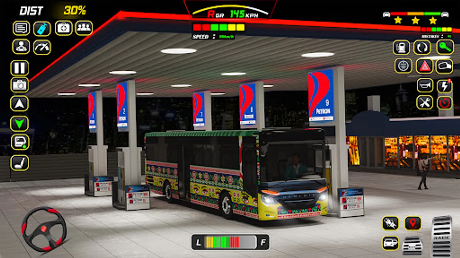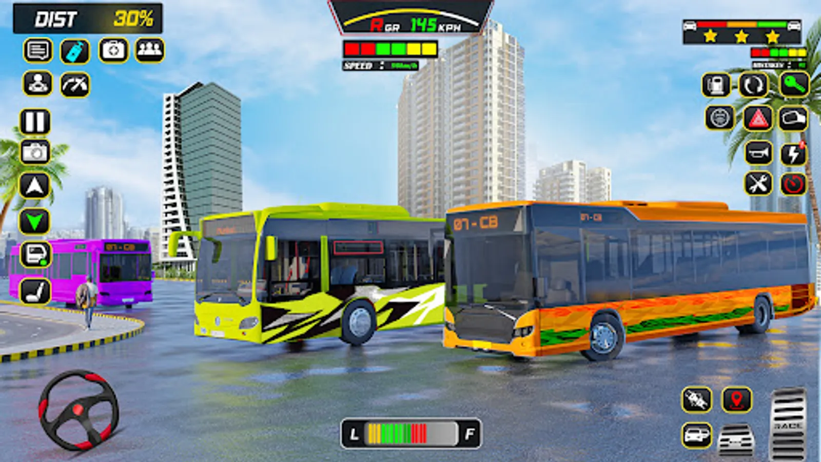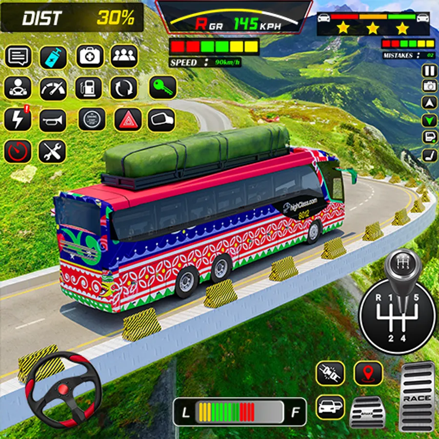 The virtual city of the bus game and coach driving 3d simulator comes alive with realistic traffic and pedestrian AI. Experience the hustle and bustle of a busy city as cars, trucks, and motorcycles navigate the streets alongside your Coach bus. AI-controlled pedestrians behave realistically, crossing roads, waiting at bus stops, and reacting to traffic signals.