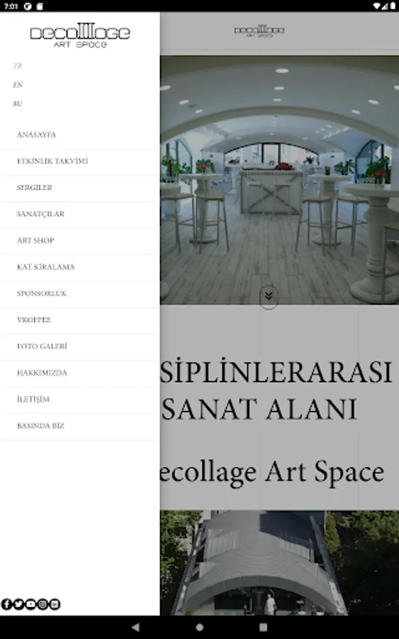 Decollage Art Space Mobile Application, With this application, the website sections of Decollage Art Space can be accessed.