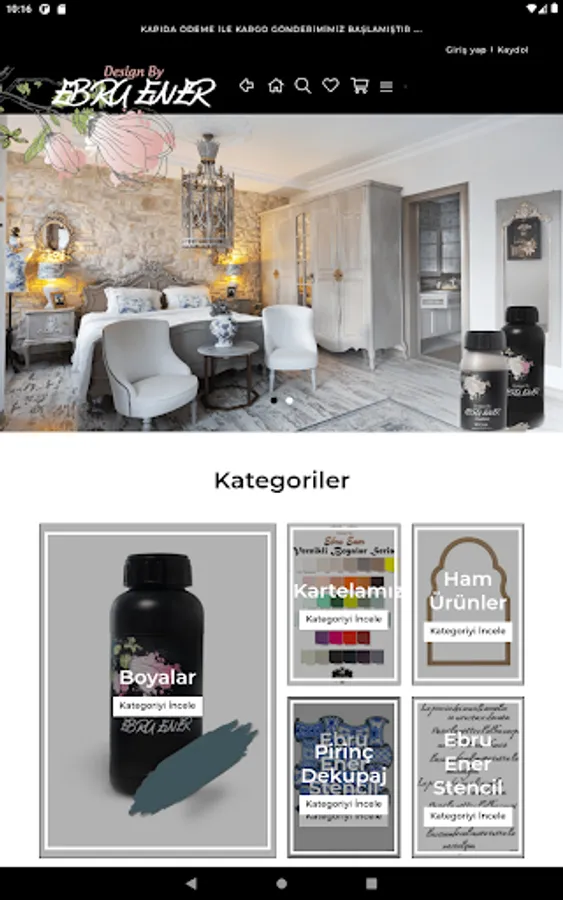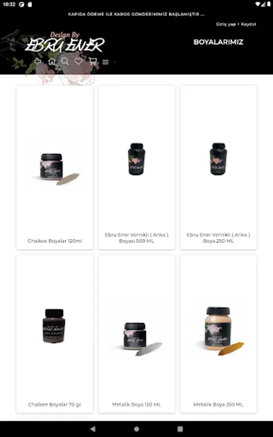 Ebru Ener Mobile Application, Ebru Ener's website sections can be accessed with this application.