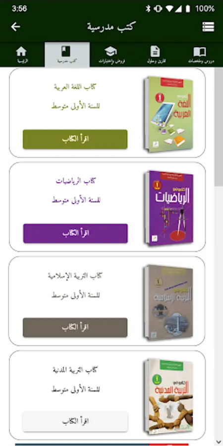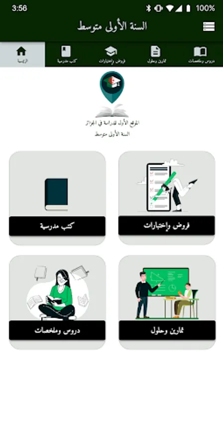 The application of the first year average contains everything that the Algerian student may need from lessons and summaries, test models and suggested topics, important information, exercises with the solution, lesson programs, external books for download, tips and directions in addition to files related to professors and teachers such as notes and books Professors in some of the subjects and curricula followed, and this has become a special bond that teachers and students rely on alike