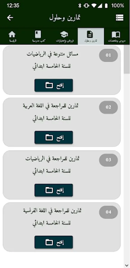 The application of the fifth primary year contains everything that the Algerian student may need from lessons and summaries, test models and suggested topics, important information, exercises with the solution, lesson programs, external books for download, tips and directions in addition to files related to teachers and teachers such as notes and books Professors in some of the subjects and curricula followed, and this has become a special bond that teachers and students rely on alike