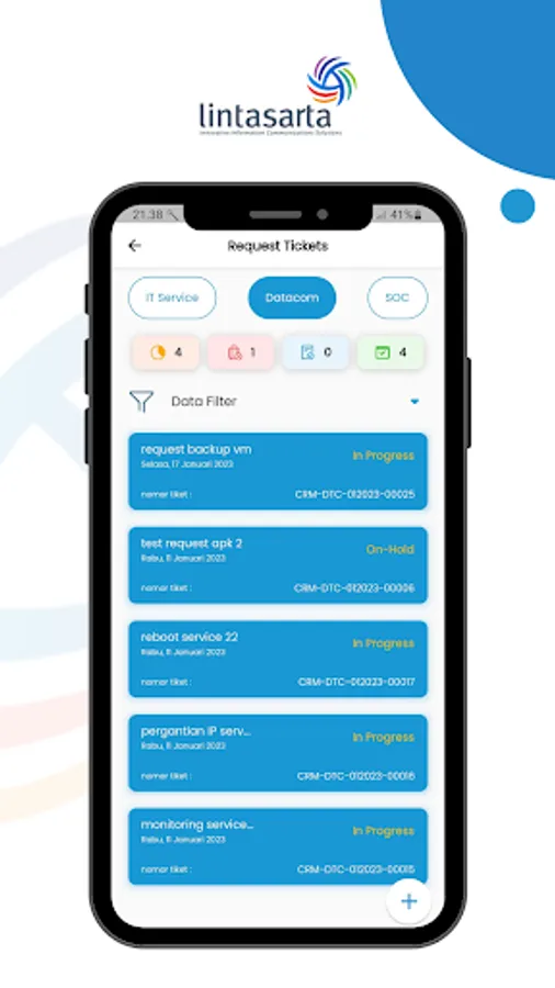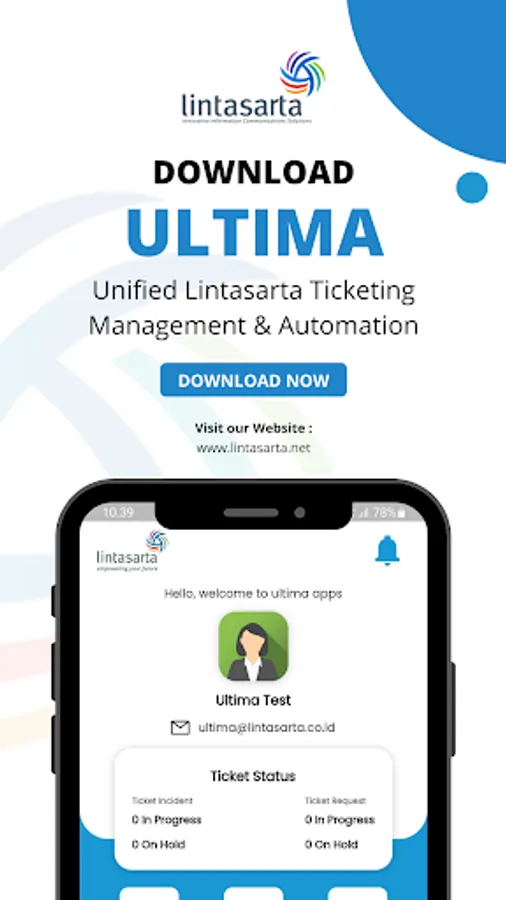 Aplikasi ULTIMA (Unified Lintasarta Ticketing Management & Automation) adalah aplikasi milik Lintasarta yang ditujukan untuk Customer Lintasarta. Aplikasi ULTIMA digunakan oleh Customer Lintasarta untuk melaporkan masalah dan mengajukan permintaan terkait layanan yang diberikan dalam bentuk Ticketing Management. Melalui Aplikasi ULTIMA customer juga bisa melihat detail dan memonitoring layanan yang disubscribe oleh masing masing customer. Selain itu Aplikasi ULTIMA juga digunakan sebagai penghubung antara customer dengan Lintasarta.