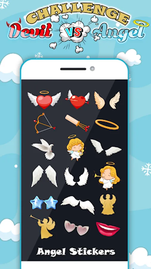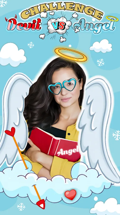 Choose photo stickers for pictures and look like an Angel or Devil.