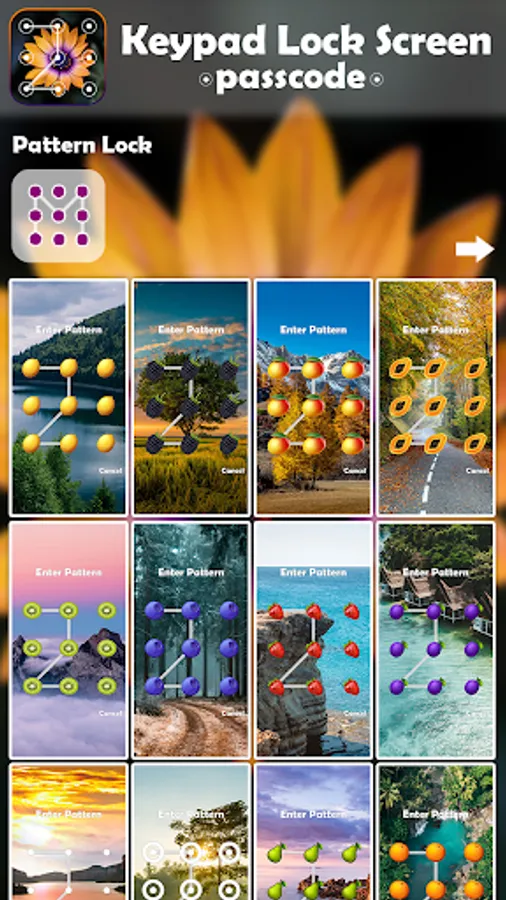Another great customization option is to select the keypad style – digits, sunflowers, sport, dots, apples, etc.