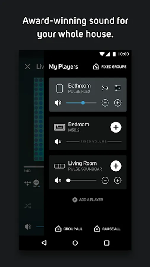 • Play different music in each room simultaneously, or stream a favorite in perfect sync to every BluOS-enabled speaker and player in your home.