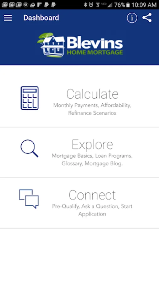 Need an easier, more accurate way to calculate your monthly mortgage payments? Need help navigating through the mortgage process? Need to contact your Loan Officer efficiently? Blevins Home Mortgage App will do the work for you with a suite of robust mortgage calculators, educational and interactive mortgage content, loan status updates, and instant access to your loan officer.