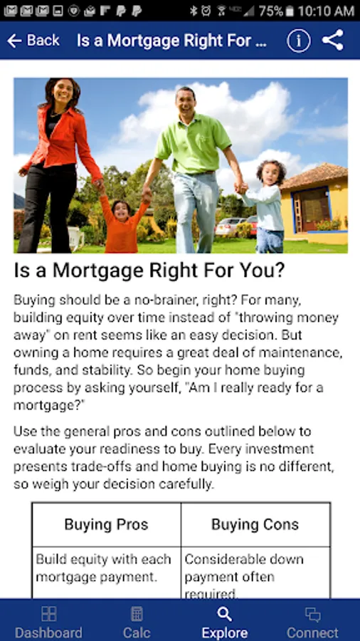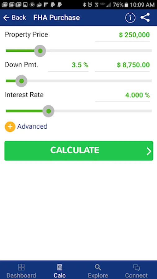 FHA, Conventional, VA, USDA and Jumbo calculations INCLUDING: Mortgage Insurance (MI), HOA, Hazard Insurance and Property Tax components! Explore the home buying process with the Step-By-Step Guide or determine which program is right for you with LoanGenie. Receive professional advice and updates on the go with direct messaging and push notifications.