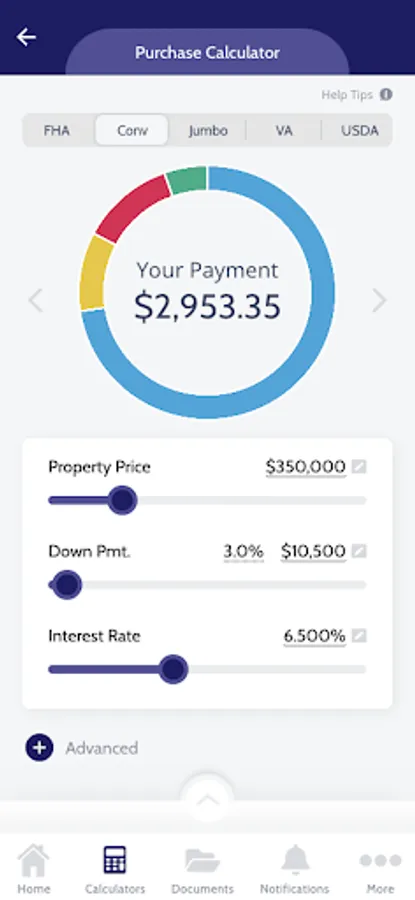 FHA, Conventional, VA, USDA and Jumbo calculations INCLUDING: Mortgage Insurance (MI), HOA, Hazard Insurance and Property Tax components! Explore the home buying process with the Step-By-Step Guide or determine which program is right for you. Receive professional advice and updates on the go with direct messaging and push notifications.