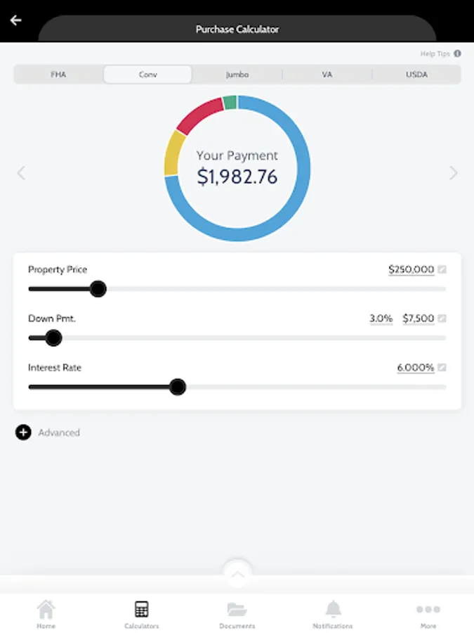 FHA, Conventional, VA, USDA and Jumbo calculations INCLUDING: Mortgage Insurance (MI), HOA, Hazard Insurance and Property Tax components! Explore the home buying process with the Step-By-Step Guide or determine which program is right for you. Receive professional advice and updates on the go with direct messaging and push notifications.