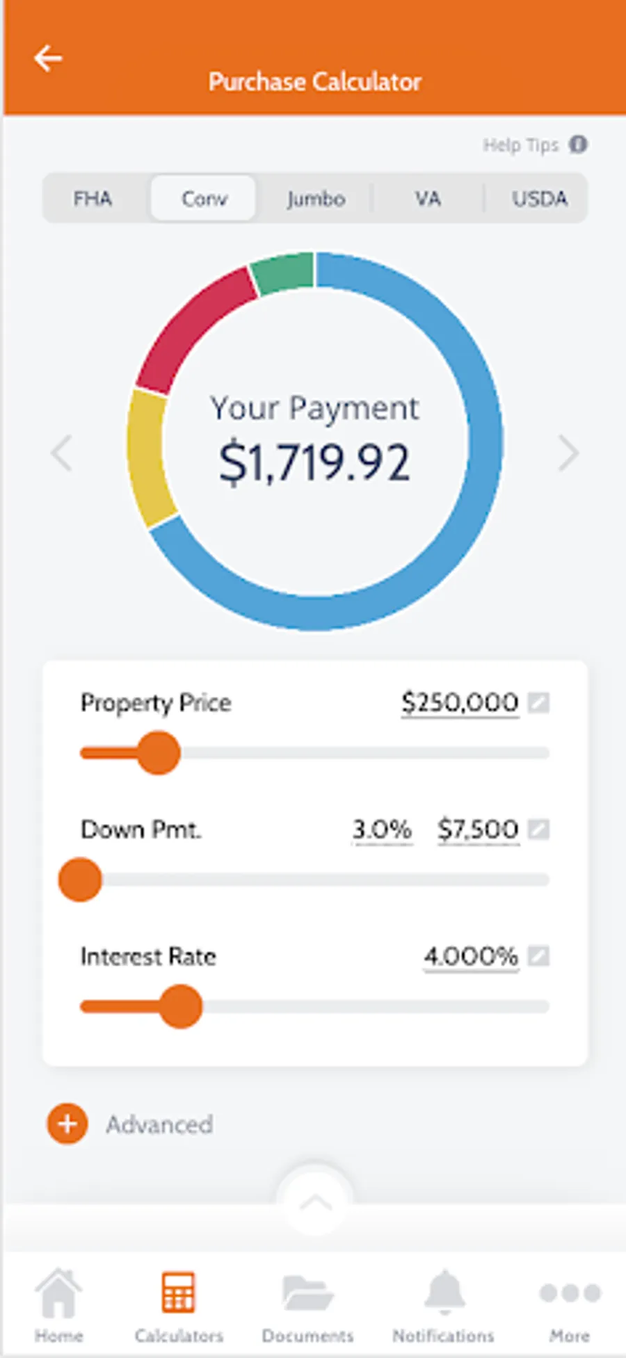 FHA, Conventional, VA, USDA and Jumbo calculations INCLUDING: Mortgage Insurance (MI), HOA, Hazard Insurance and Property Tax components! Explore the home buying process with the Step-By-Step Guide or determine which program is right for you. Receive professional advice and updates on the go with direct messaging and push notifications.