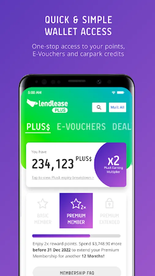 • One-stop wallet access to loyalty points, E-Vouchers, deals and carpark credits