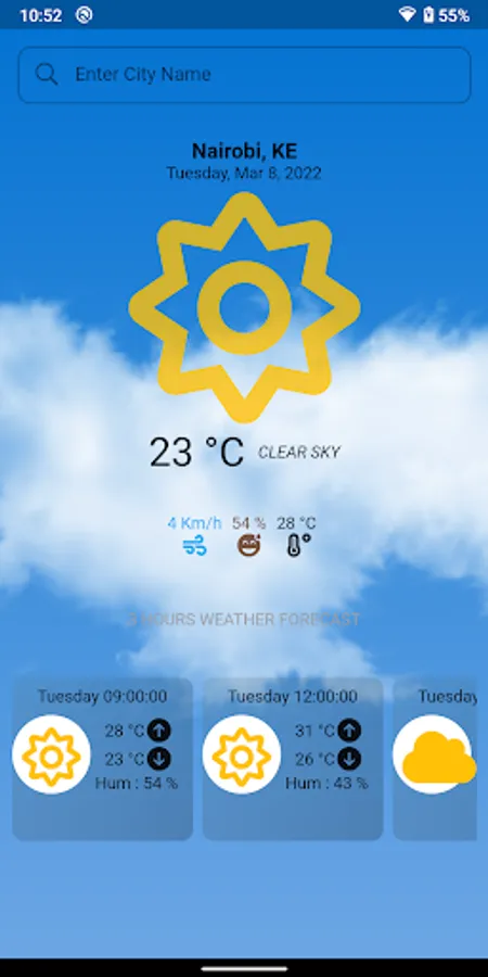 Get weather updates of cities you wish to visit and/or you are in with a 3 hours interval period between forecasts