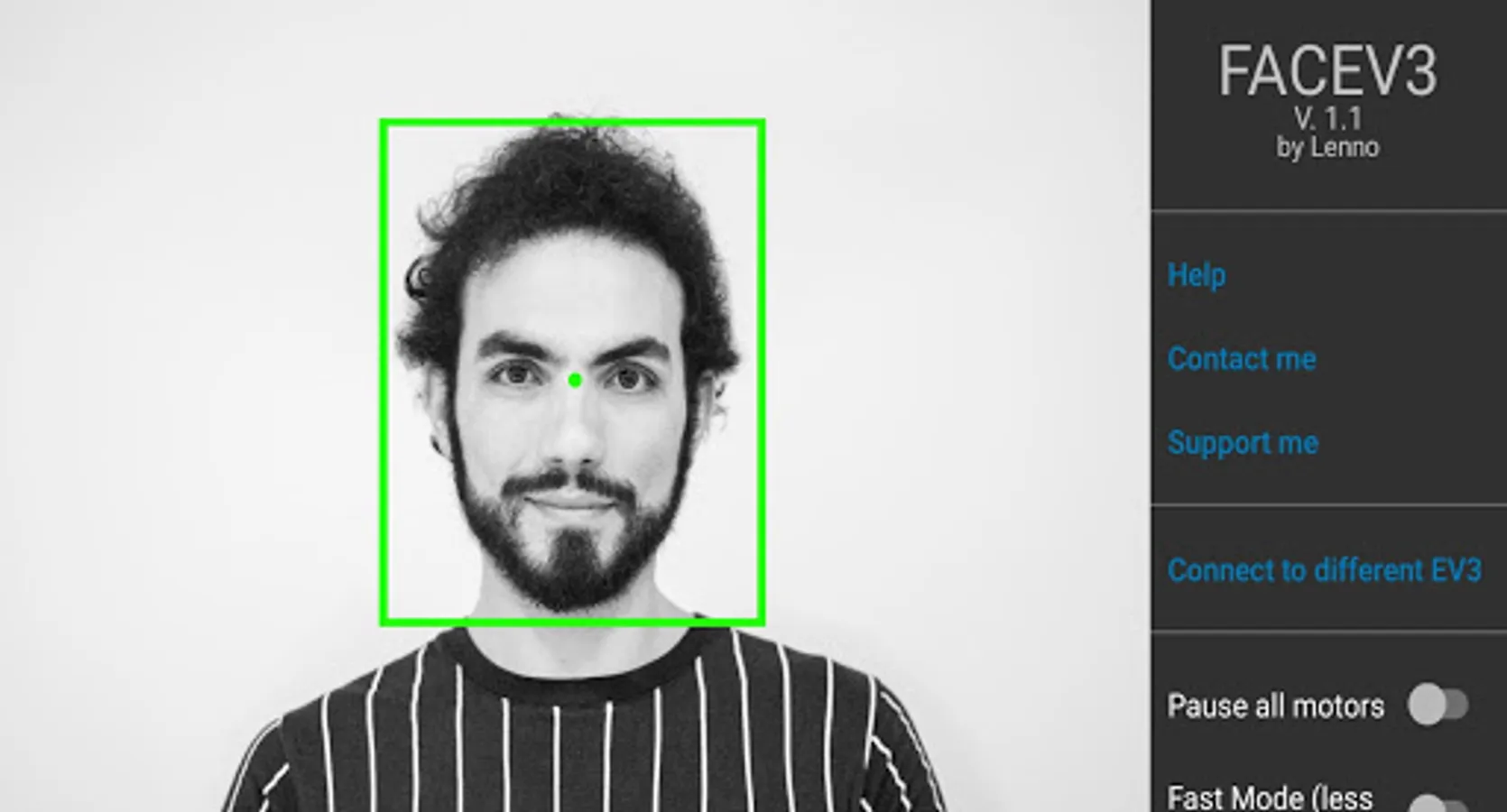 Makes your EV3 to a facetracker. A nice combination of new technology/software running on most smartphones with direct reaction of the robot.