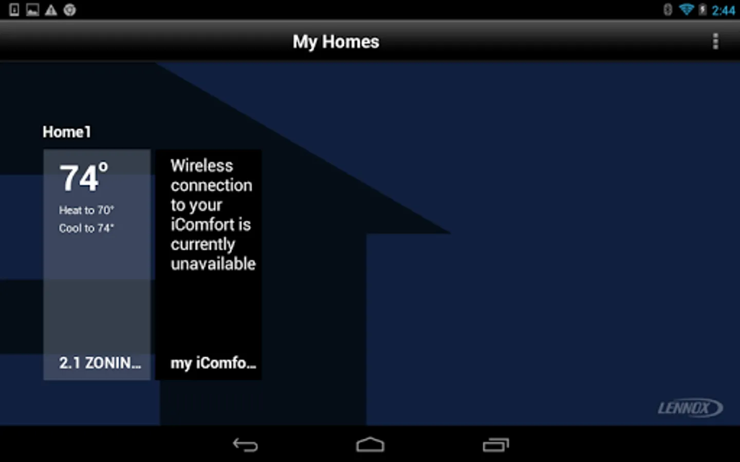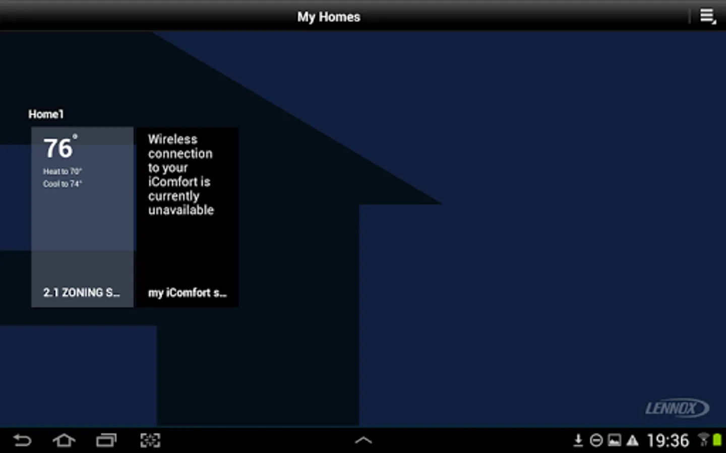 You must own a Lennox iComfort Wi-Fi® thermostat to use the app. The Lennox iComfort Wi-Fi thermostat must also be connected to your home’s Wi-Fi router before the app can control the settings. For more information about the Lennox iComfort Wi-Fi thermostat or for help connecting to your wireless network, visit www.lennox.com/residential/