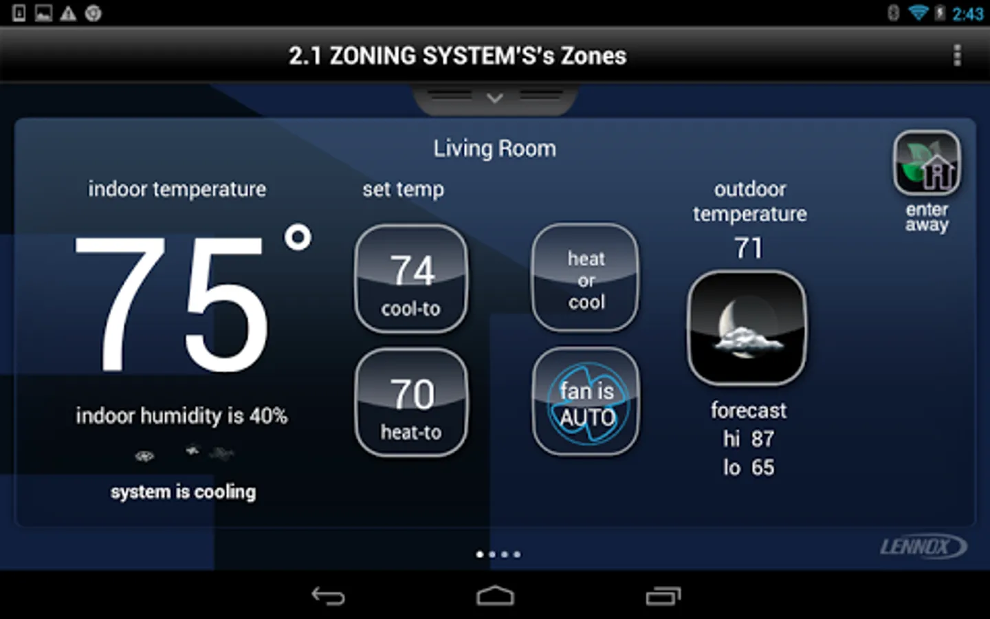 This app is designed to work with Lennox iComfort Wi-Fi Thermostat.