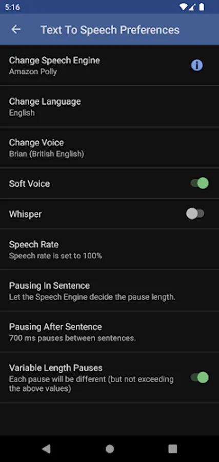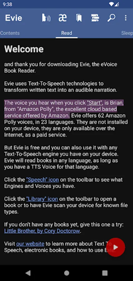 Evie uses Text To Speech (TTS) technologies to transform written text into an audible narration.