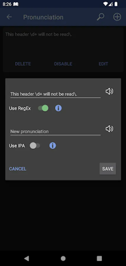 Evie allows you to customize speech speed and the length of pause at punctuation marks in sentence and at the end of sentences, so you can perfectly adapt the speech to your style.