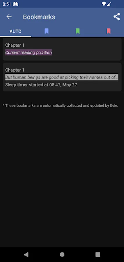 Evie calculates the remaining listening time with high precision for the current chapter and for the entire book.
