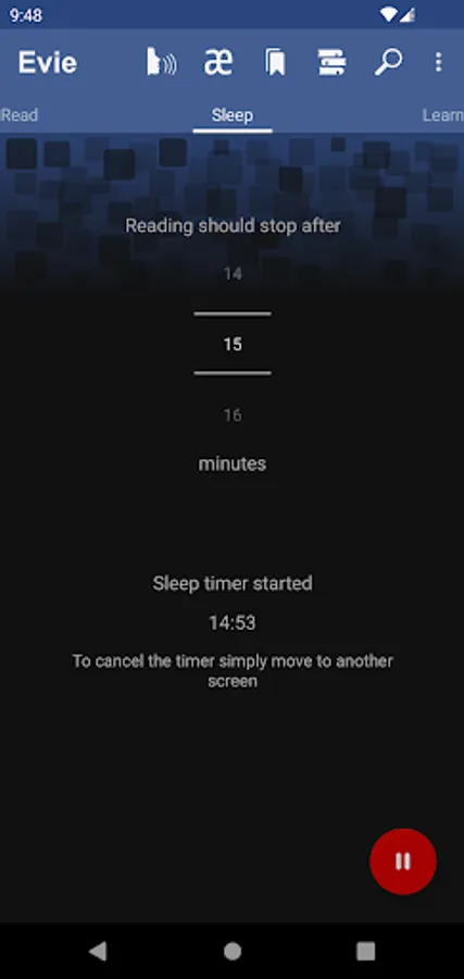 Activate it with a single swipe and then Evie will stop reading after the selected time.