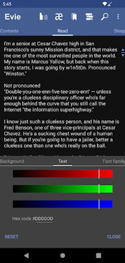 Evie remembers your TTS Engine and Voice preferences per language and switches voices automatically to match the book's language.