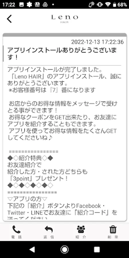 With this app, you can receive the latest information of Leno HAIR and use convenient functions.