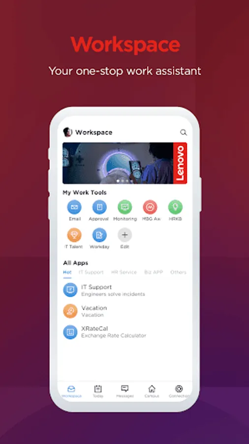 - All Apps: various types of Lenovo work apps such as IT service, HR service and Biz apps.