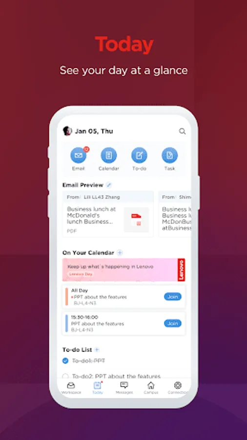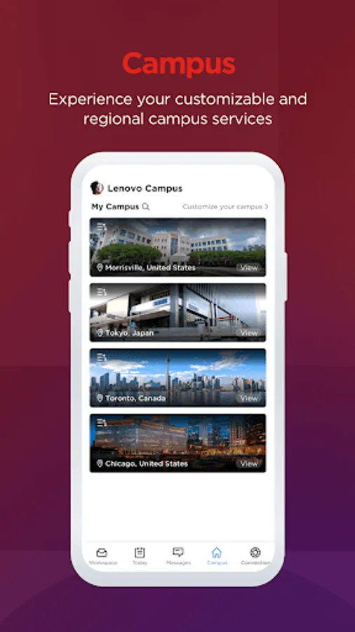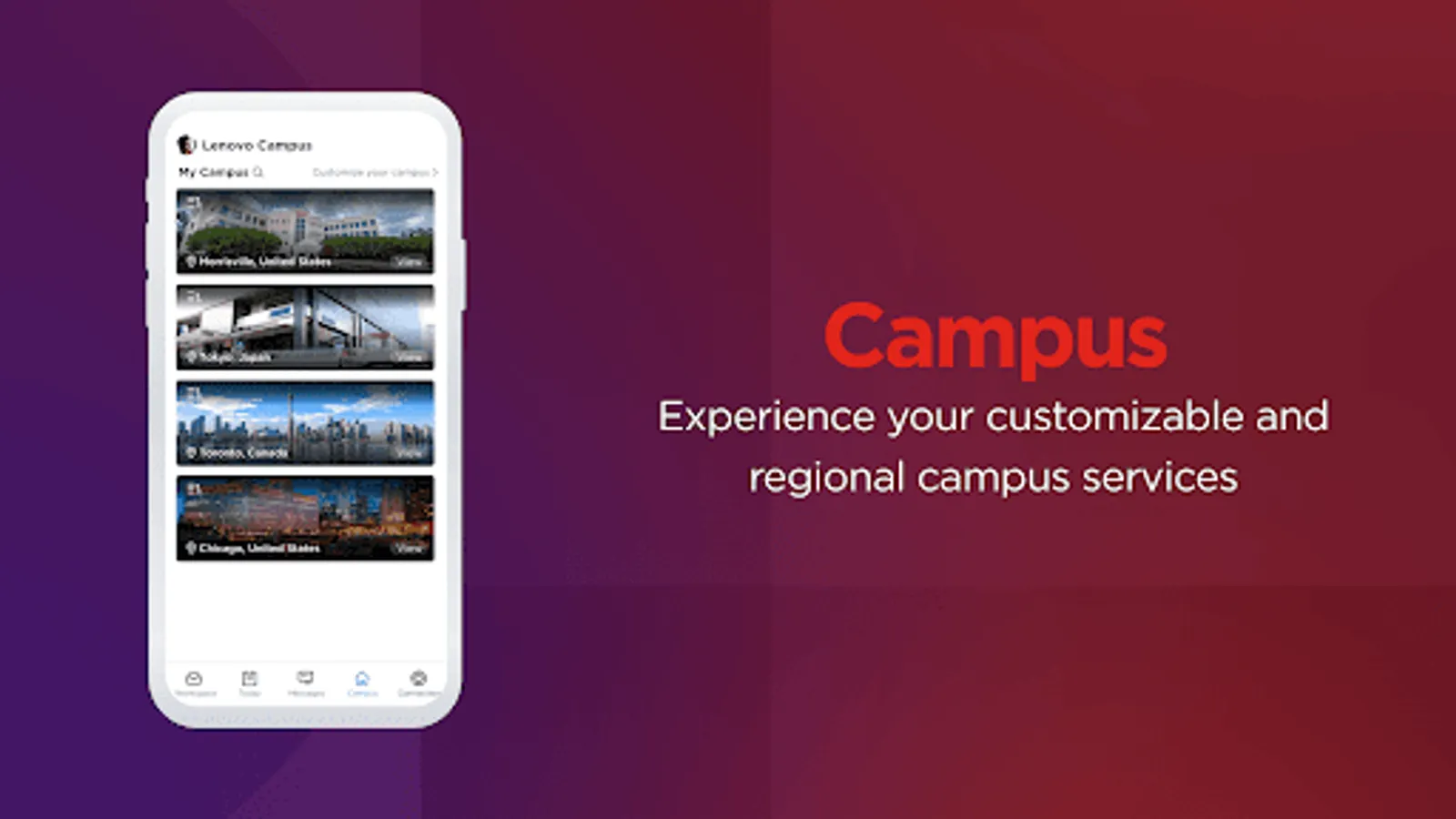 - Experience your customized and local campus services such as Campus Info, Space Utilization, Lenovo News, etc.
