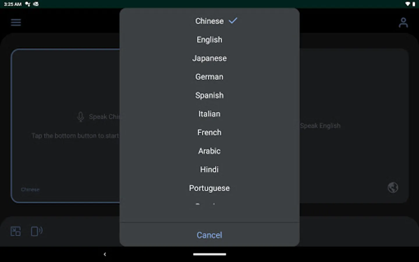 Speech translation: real-time voice input to real-time text output for 11 languages.